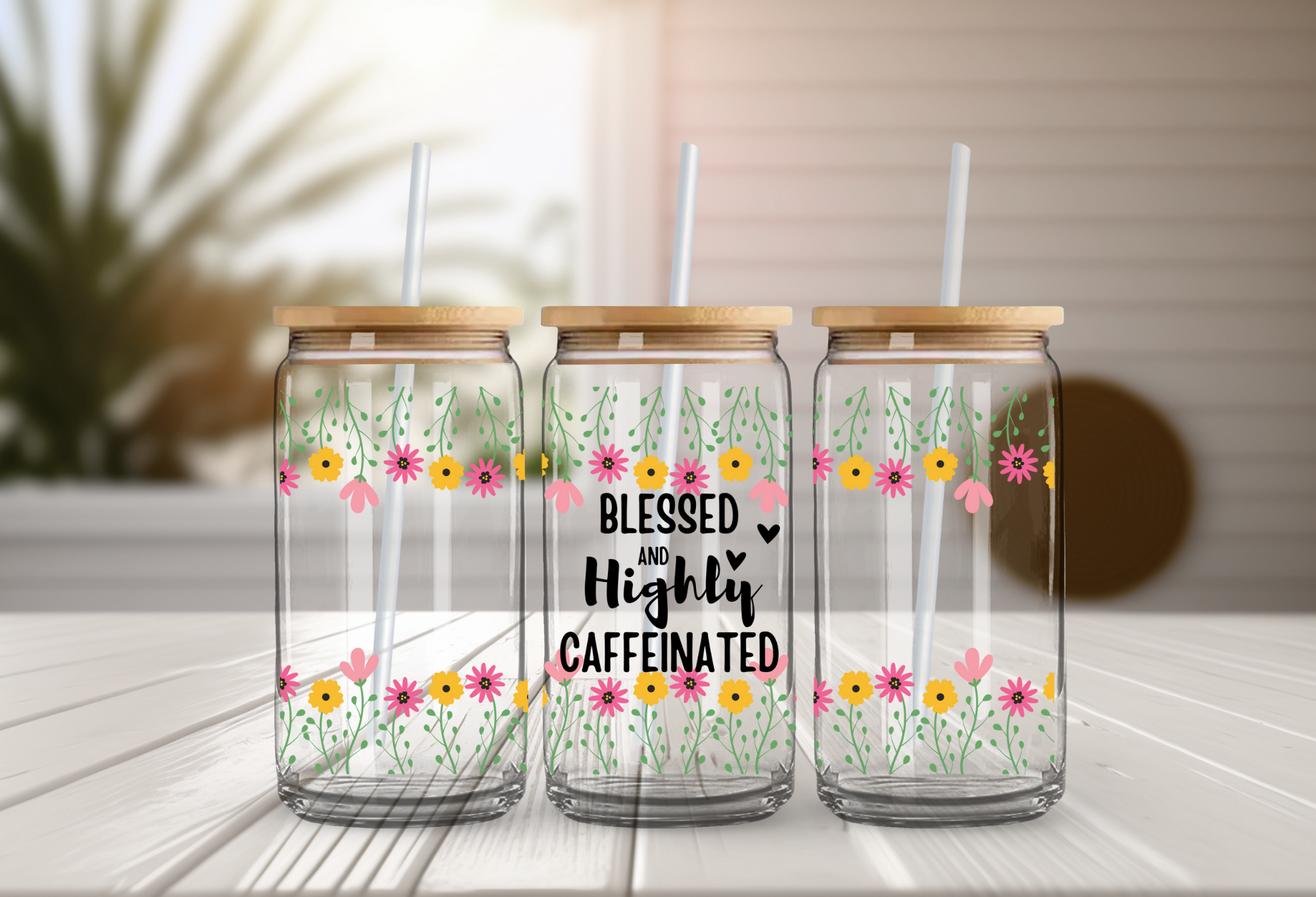Blessed & Highly Caffeinated 16 oz Glass Cup